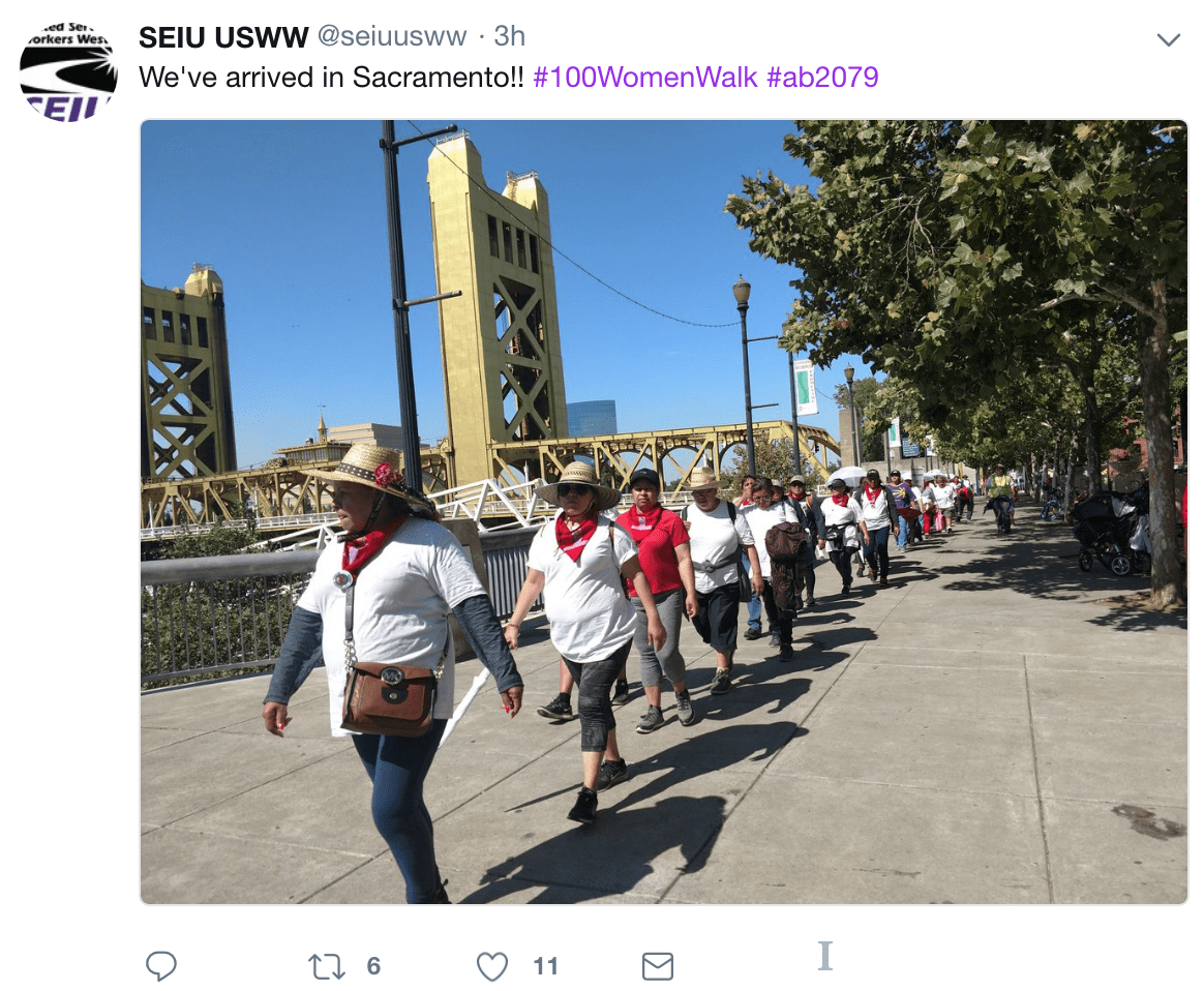 100 women marched 100 miles to the California capitol in support of Assembly Bill 2079, the Janitor Survivor Empowerment Act, which would put in place greater protections...